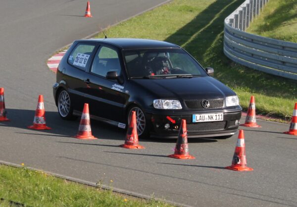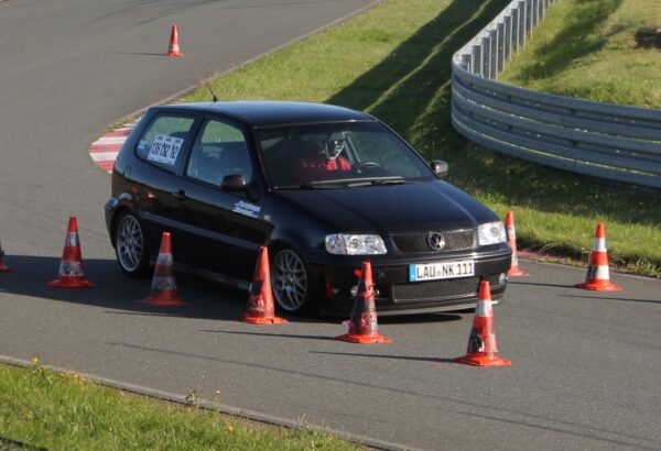 Auch mehrere Mitglieder des MC Lauf nutzten die Möglichkeit, unabhängig von Motorleistung, Rennfahrwerk und Spezialreifen ihren Spaß auf der Slalompiste zu haben. Unser Slalom-Youngster Noel Knorr stand bereits vormittags mit seinem straßenbereiften VW Polo GTI auf Bestzeit in der G3 am Start. Zwei geworfene Pylonen warfen ihn leider auf den 7. Platz zurück. Und wenn man schon in Schlüsselfeld ist, nutzt man doch gerne die Möglichkeit zu einem weiteren Start auf der zugegebenerweise etwas hakelig gesteckten Strecke. Hier verbesserte er seine Fahrzeiten vom Vormittag um 9/10, bzw. 6/10 Sekunden, aber erwischte leider ebenfalls eine Pylone. Die drei Strafsekunden werden bei der GLM-Wertung aber der Differenz zugerechnet, was in der Endabrechnung einen 33. Platz bedeutete. Sein Papa, unser Jugendleiter Markus Terschanski-Knorr, erwischte bei seinem ersten Slalomeinsatz ebenfalls eine Pylone und musste so mit dem 32. Platz zufrieden sein. Ohne Pylone hätten seine 19/100 Sekunden Differenz sogar den 4. Platz bedeutet! Unser ‚Clubchef‘ Peter Gehret wollte in Schlüsselfeld seinen Opel Kadett B mit seinen wahnsinnigen 55 PS auf seine Slalomtauglichkeit testen. Die schmalen 155er „Teerschneider“ und die üppigen Federwege sorgten für spektakuläre Fahreinlagen. Wäre nicht ebenfalls eine vorwitzige Pylone in selbstmörderischer Absicht direkt vor den Kadett gesprungen, hätten die 9/100 Sekunden Differenz einen dritten Platz bedeutet. So wurde es leider nur Platz 29. Egal – Mund abwischen, Krone richten und weiter geht’s beim AMSC Bindlach am 12.10. 😊