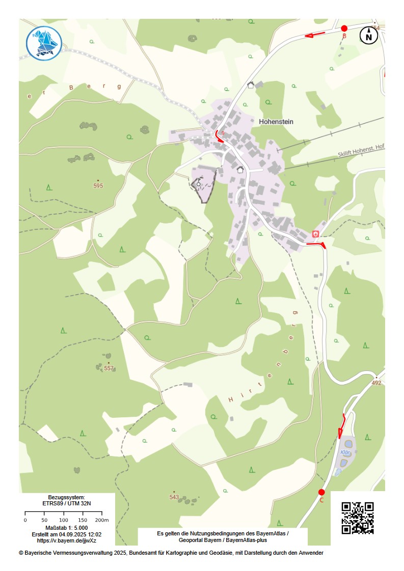 Mit einer „Punktskizze“ (in einem Kartenausschnitt wird die zu fahrende Strecke mit Punkten markiert. Es ist immer die kürzeste Verbindung von einem Punkt zum nächsten zu fahren) ging es dann quer durch Happurg ins Pegnitz Einkaufs Zentrum nach Hohenstadt.