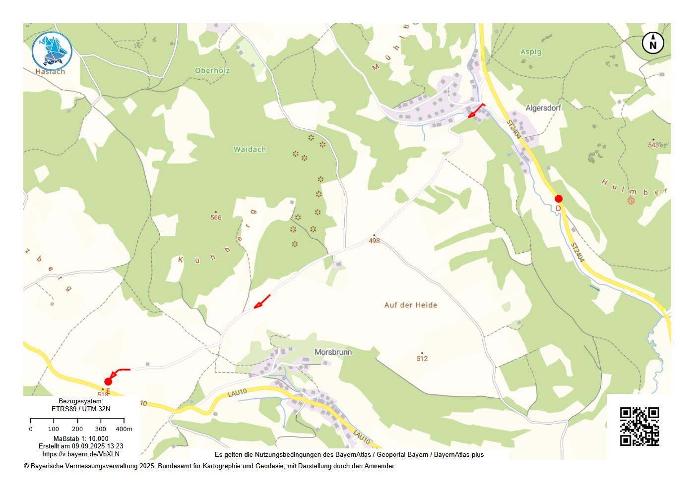 Ab hier sorgten wieder die „Chinesen“ für den korrekten Weg. Über Alfalter, Vorra und Stöppach ging es mit Abstechern über kleine Umwege (z.B. am Weg liegende Parkplätze) bis nach Treuf. Um es nicht zu einfach zu machen  😉 ,wechselten wir zu „Pfeilskizzen“ für die korrekte Wegfindung. In mehreren Kartenausschnitten waren kleine Pfeile versteckt, die immer hintereinander von einem zum nächstgelegenen Pfeil gefahren, die Route ergaben. Über kleine und kleinste Straßen fuhren die Teams von Treuf über Hohenstein, Algersdorf und den Märzenbecherwald (ein Team musste dem Vernehmen nach hier sogar über den Berg geschoben werden 😉 ) in Richtung Moorsbrunn.